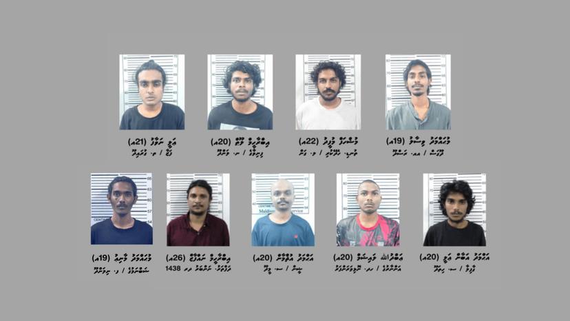 މި މައްސަލައާ ގުޅިގެން ހައްޔަރުކޮށްފައިވަނީ އއ. ރަސްދޫ / ދޫގަސް، މުޙައްމަދު ވިސާލު (19އ) އާއި، ލ.ގަން، ތުނޑި. ހެދޭކުރި، މުޝްހަފް މުފީދު (22އ) އާއި، ނ. ލަންދޫ / ފިނިވާގެ، އިބްރާހީމް ލޫޠް (20އ) އާއި، ތ. ގުރައިދޫ / ފަޒާ، ޢަލީ ނަވާފު (21އ) އާއި، ސ. ހިތަދޫ / ގާފިލާ، އަޙްމަދު އަބާން ޢަލީ (20އ) އާއި، ހދ. ނޮޅިވަރަންފަރު / އަންނާރުގެ، ޢަބްދުﷲ ލައިޝަމް (20އ) އާއި، ސ. މީދޫ /ޝީން ، އަޙްމަދު ޢުޘްމާން (20އ) އާއި، މާލެ / ދަފްތަރު ނަންބަރު ދރ 1438، އިބްރާހީމް ނައްފާޒް (26އ) އެވެ.