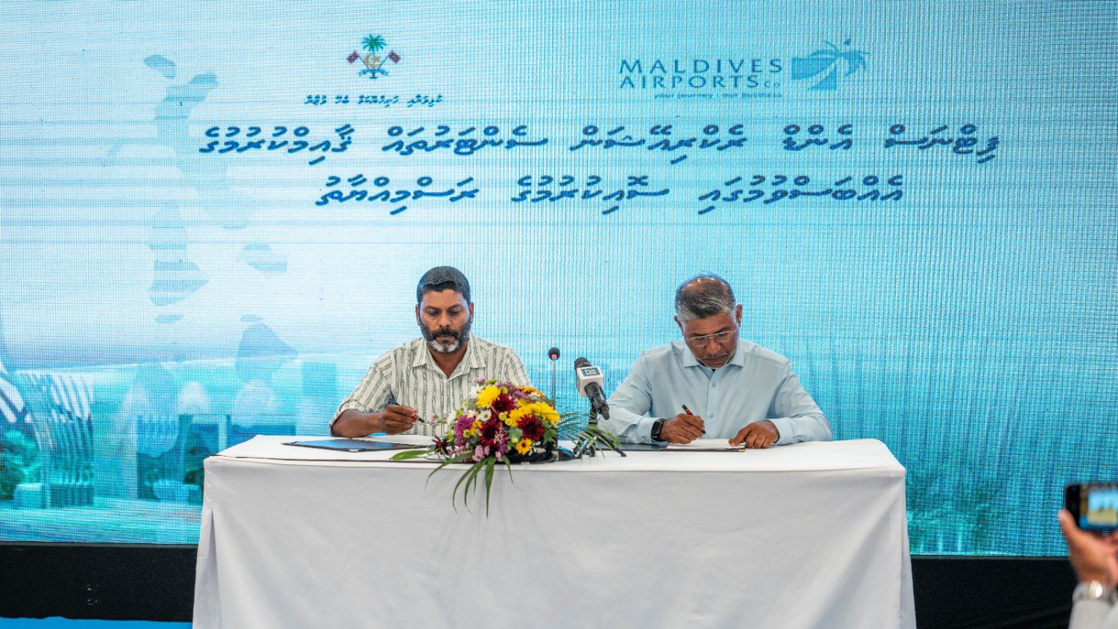 ޖުމްލަ 63 ފިޓްނަސް އެންޑް ރެކްރިއޭޝަން ސެންޓަރު އެޅުމުގެ އެއްބަސްވުމުގައި ކުޅިވަރު ވުޒާރާގެ ފަރާތުން ސޮއިކުރެއްވީ ކުޅިވަރާއި ހަށިހެޔޮކަމާ ބެހޭ ވަޒީރު ޢަބްދުﷲ ރާފިޢުއެވެ. މޯލްޑިވްސް އެއާޕޯޓްސް ކޮމްޕެނީ ލިމިޓެޑްގެ ފަރާތުން ސޮއިކުރެއްވީ އެ ކުންފުނީގެ ސީއީއޯ އަދި މެނޭޖިން ޑިރެކްޓަރ އިބްރާހިމް ޝަރީފް މުޙައްމަދެވެ.