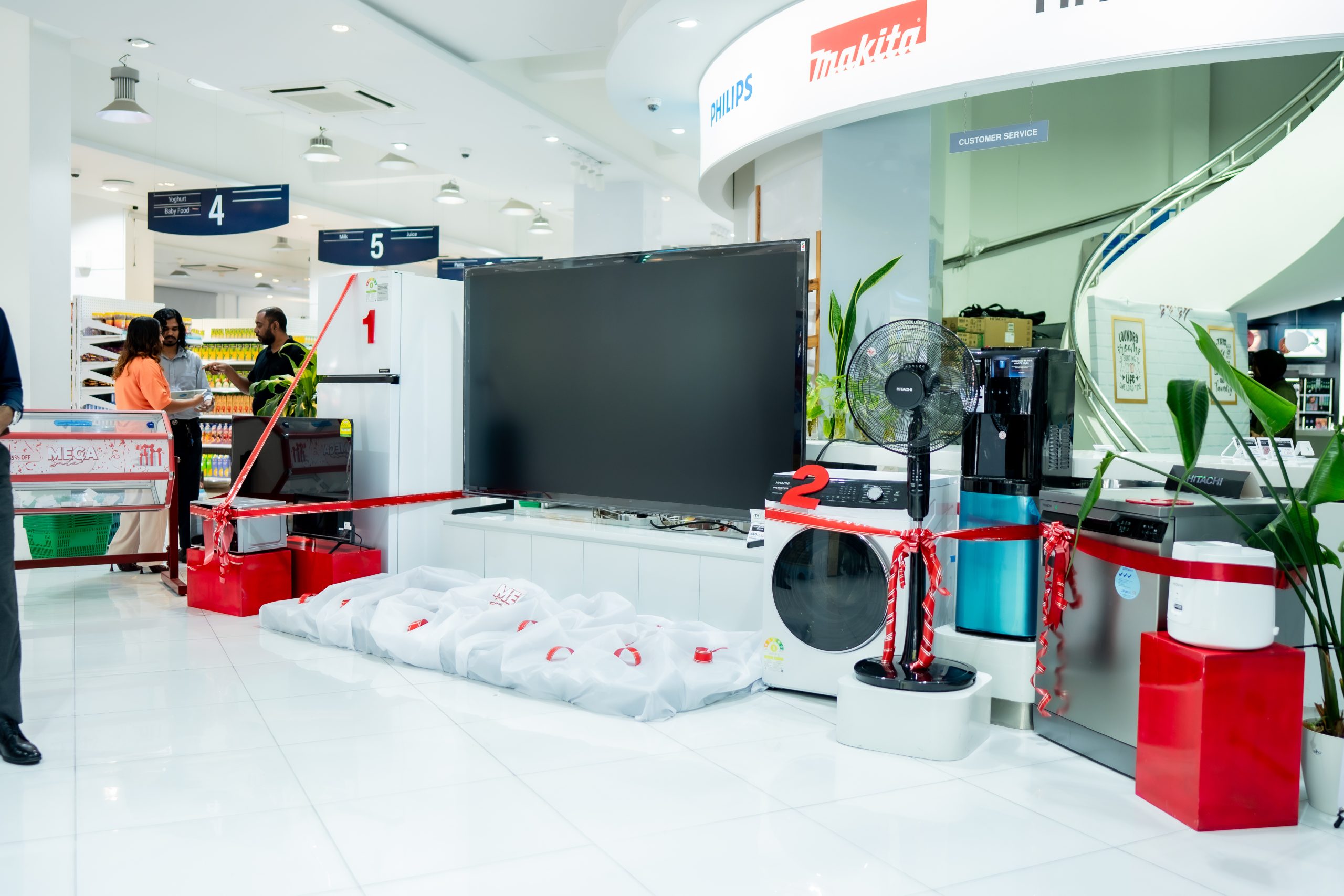 1 ވަނަ: ފިލިޕްސް 50 އިންޗިގެ ޓީވީއަކާއި ހިޓާޗީ މައިކްރޯވޭވް އަދި ހިޓާޗީ ބްރޭންޑްގެ އައިސް އަލަމާރިއެއް
