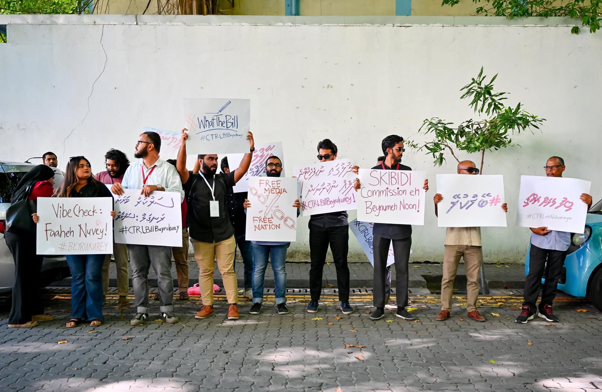 މިނިވަން މީޑިއާ ނެތިކޮށްލަން ރައްޔިތުންގެ މަޖިލީހަށް ހުށަހަޅާފައިވާ ބިލާ ދެކޮޅަށް އަޑު އުފުލަން ރައްޔިތުންގެ މަޖިލިސް ކައިރީގައި ނޫސްވެރިން މިއަދު މުޒާހަރާ ކުރަން ފަށައިފި އެވެ.