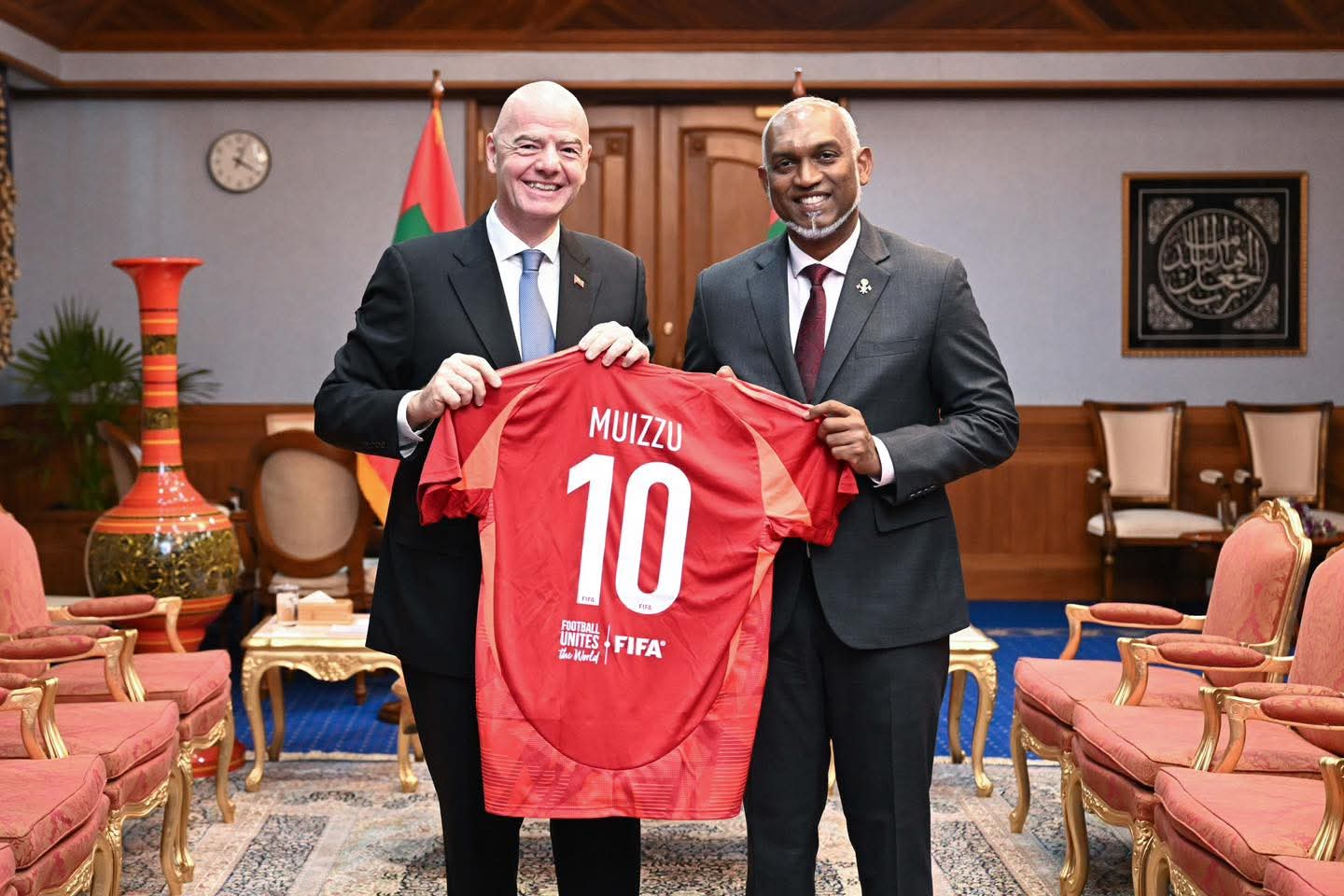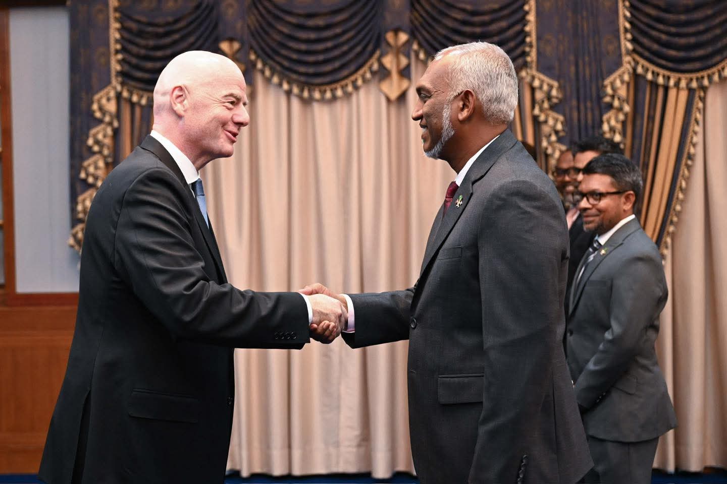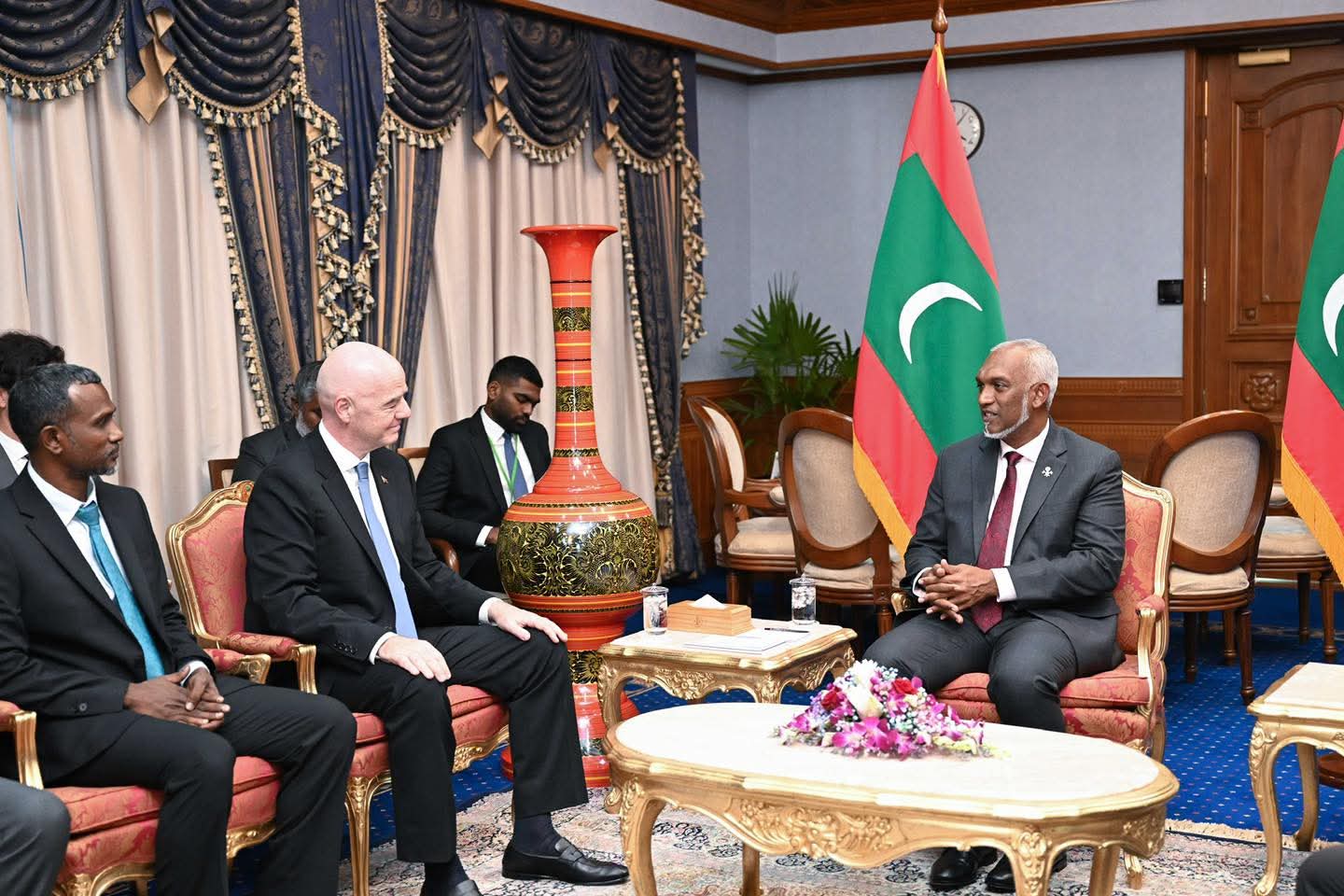 ފޮޓޯ: ފީފާގެ ރައީސް، ރައީސުލްޖުމްހޫރިއްޔާގެ އަރިހަށް އިޙުތިރާމުގެ ޒިޔާރަތެއް ކުރެއްވުން ފޮޓޯ ފަހުގެ ގޮށްކޮޅު24 އޮކްޓޯބަރ، 2025 އިޝްތިހާރު ޖެއްސެވުމަށް ގުޅުއްވާ