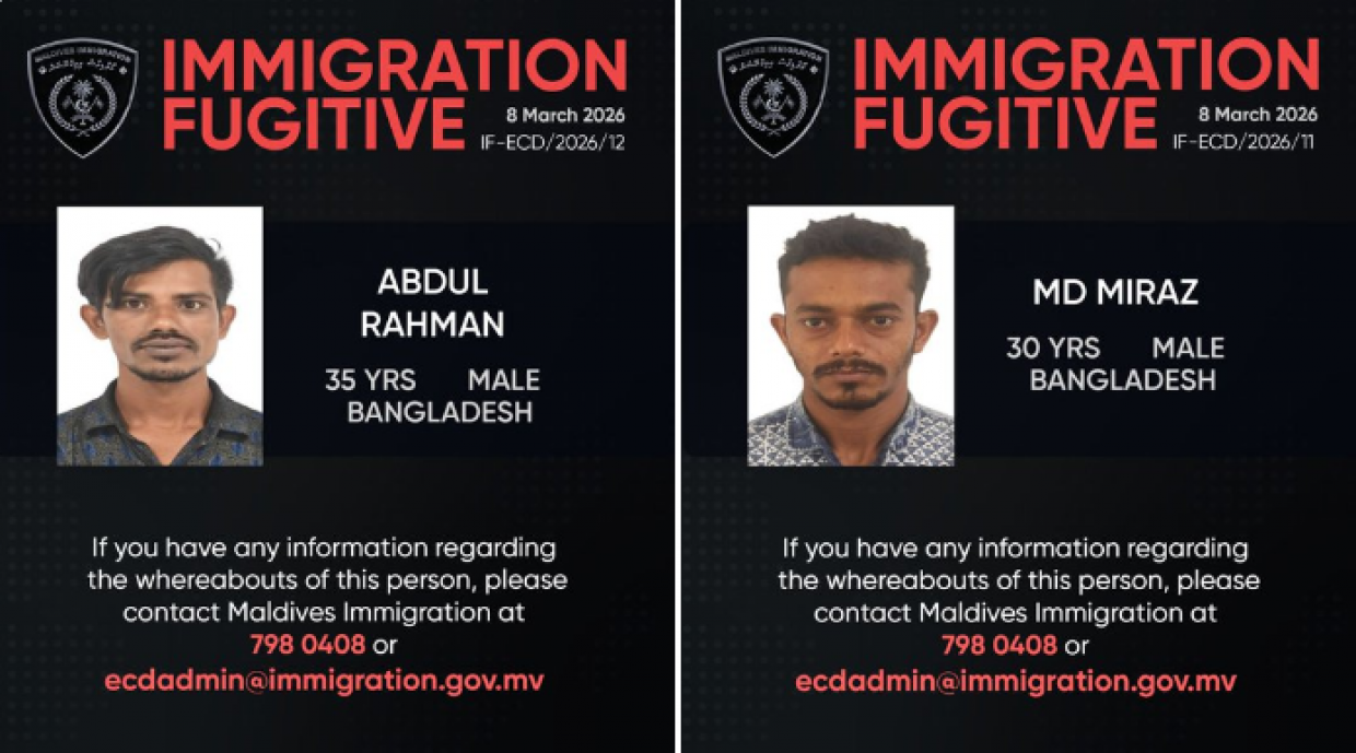 އިމްގްރޭޝަނުން ވަނީ އެ ދެ މީހުންނާ ގުޅޭ އެއްވެސް މައުލޫމާތެއް އެނގޭނަމަ އިމިގްރޭޝަންގެ ނަމްބަރު 7980408އަށް ގުޅަން ނުވަތަ ecdadmin@immigration.gov.mv އަށް މެއިލްކޮށް މައުލޫމާތު ހިއްސާކުރުމަށް އެދިފައެވެ.
