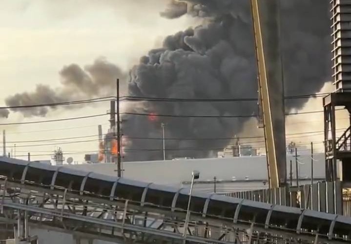 އެމެރިކާގެ ޓެކްސަސްގައި ހުންނަ ތެޔޮ ސާފުކުރާ ވަރަށްބޮޑު ކާރުޚާނާއެއްގައި އަލިފާން ރޯވެ އަނދަމުން އެބަދެއެވެ.